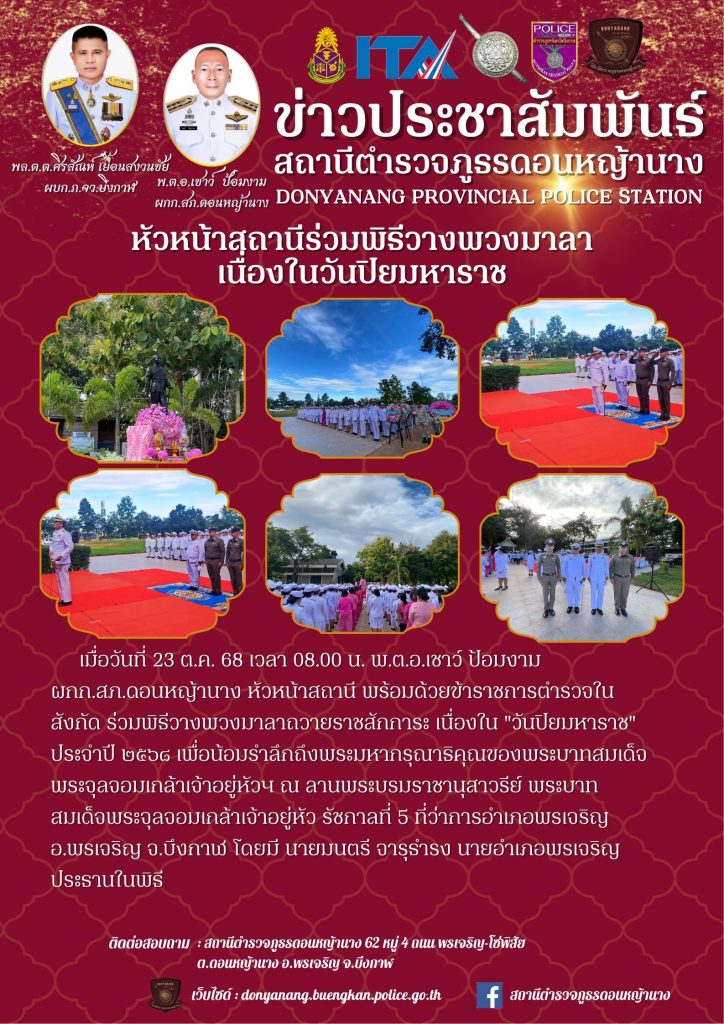 กิจกรรมเนื่องในวันปิยมหาราช 23 ตุลาคม 2568 โดย admin / ข่าวภารกิจผู้บังคับบัญชา FacebookFacebookXXLINELine
