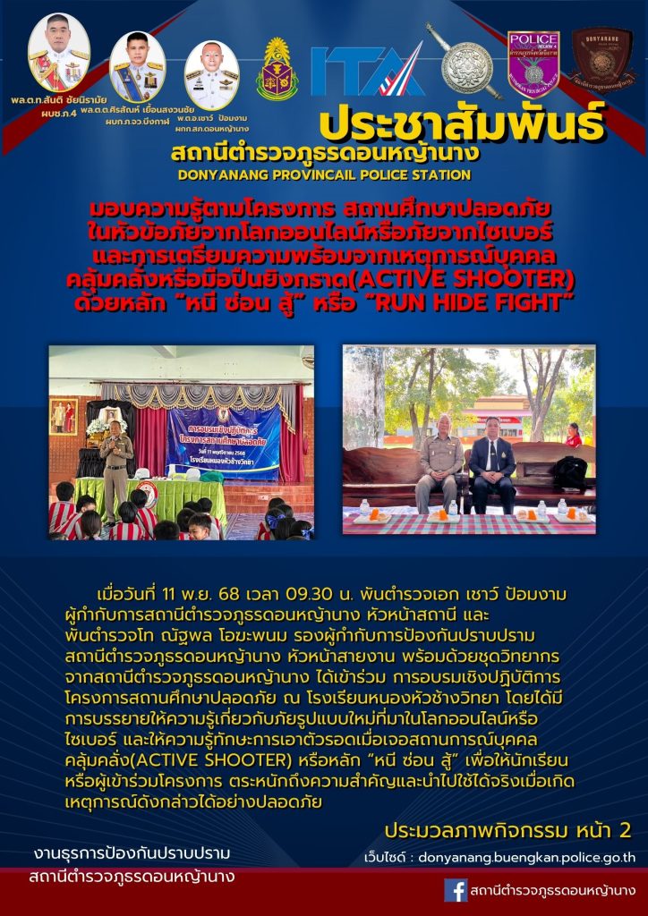 ชุดวิทยากรมอบความรู้ตามโครงการสถานศึกษาปลอดภัย