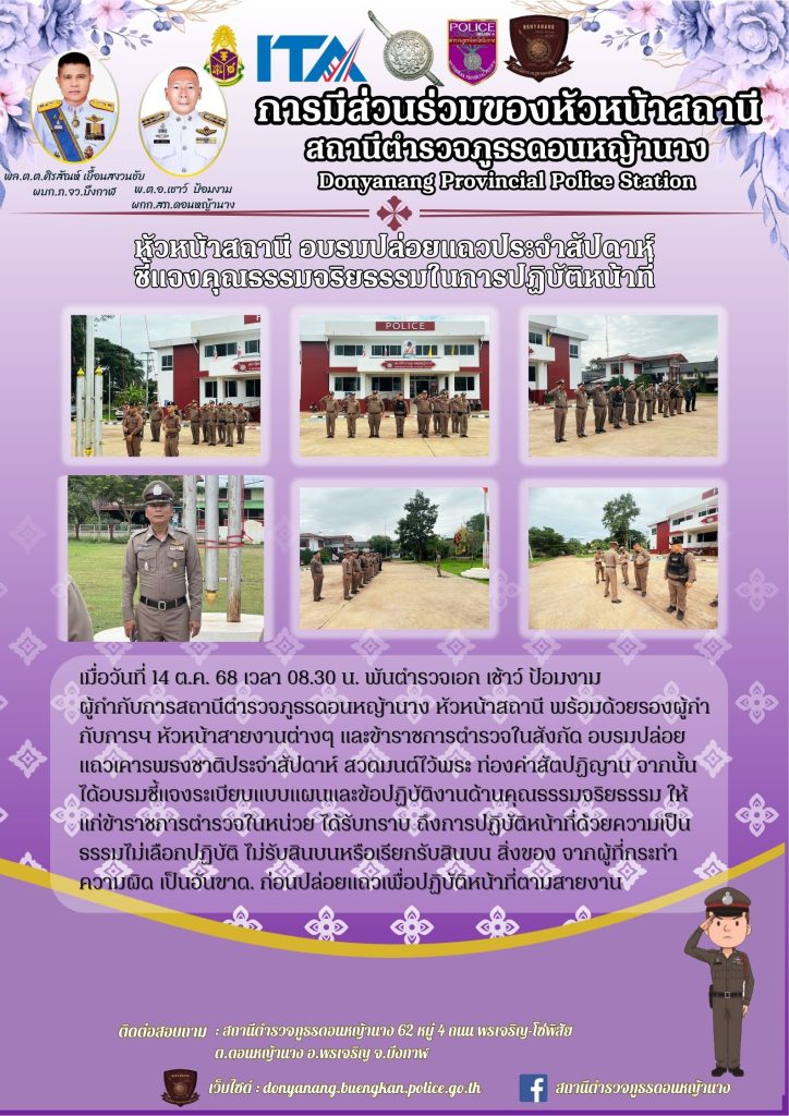 หัวหน้าสถานี อบรมปล่อยแถวชี้แจงคุณธรรมจริยธรรมก่อนออกปฏิบัติหน้าที่
