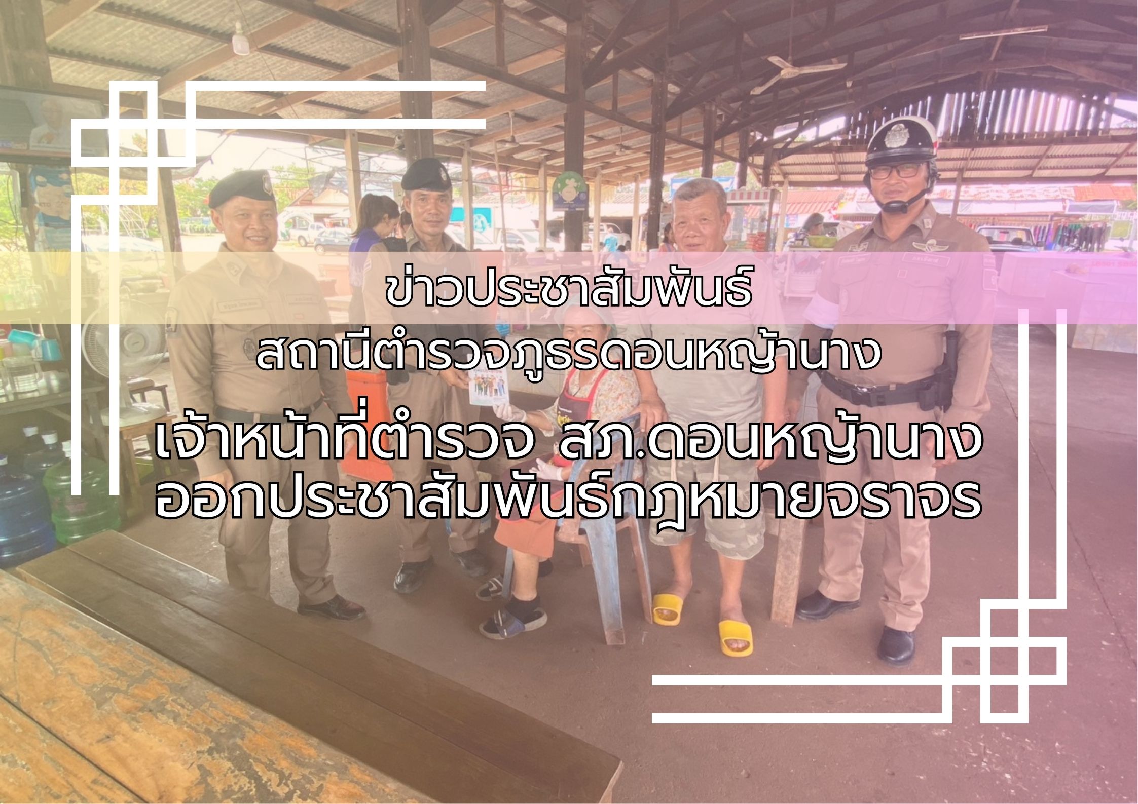 เจ้าหน้าที่ตำรวจ สภ.ดอนหญ้านางประชาสัมพันธ์เกี่ยวกับกฎหมายจราจร