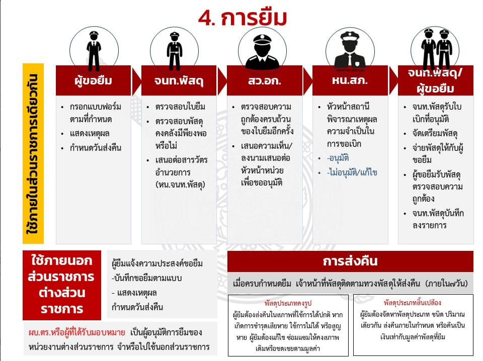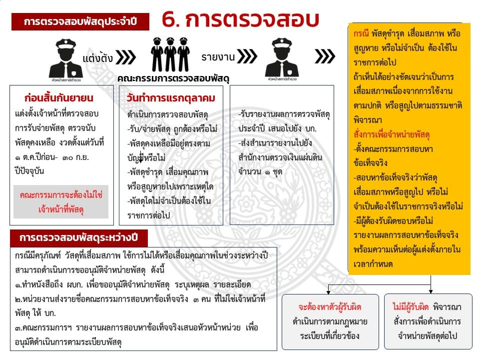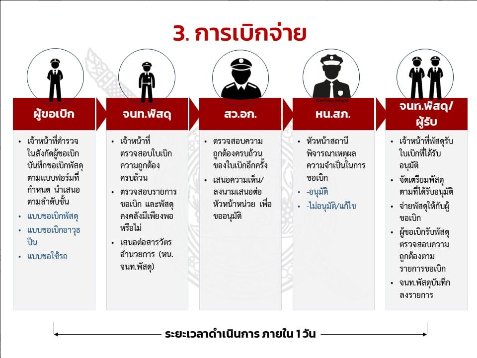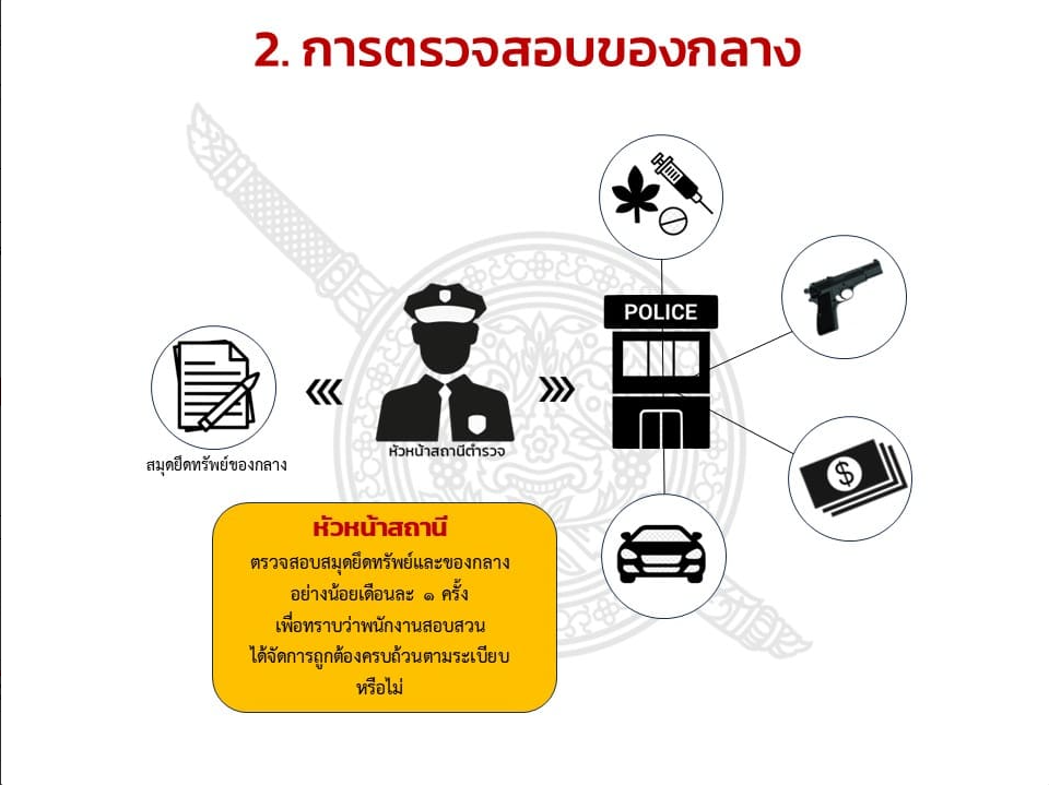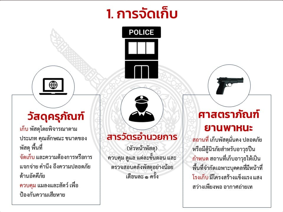 ตรวจสอบ กำกับดูแล และตรวจนับอาวุธยุทธภัณฑ์ของสถานีตำรวจและของบริจาค