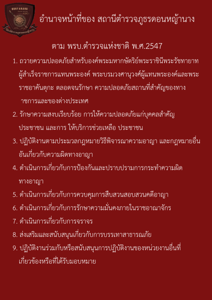 อำนาจหน้าที่ของสถานีตำรวจภูธรดอนหญ้านาง